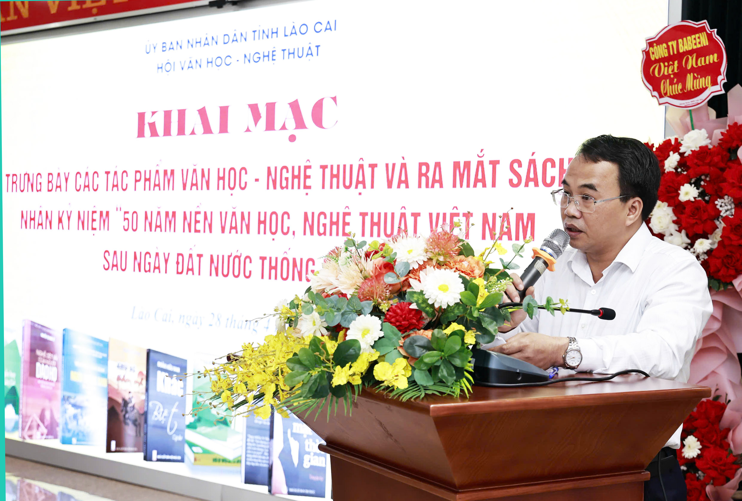 Phát biểu khai mạc, ông Nguyễn Thành Long, Phó Chủ tịch phụ trách Hội Văn học - Nghệ thuật tỉnh Lào Cai, khẳng định: Nửa thế kỷ qua là một hành trình dài với biết bao đổi thay, nhưng cũng là khoảng thời gian mà nền văn học nghệ thuật nước nhà dưới ngọn cờ của Đảng và dân tộc không ngừng phát triển, góp phần làm đẹp tâm hồn con người, làm phong phú đời sống tinh thần của nhân dân, đồng thời giữ vững vai trò là tiếng nói của lương tri, là ngọn lửa của niềm tin, của khát vọng vươn tới chân – thiện – mỹ.